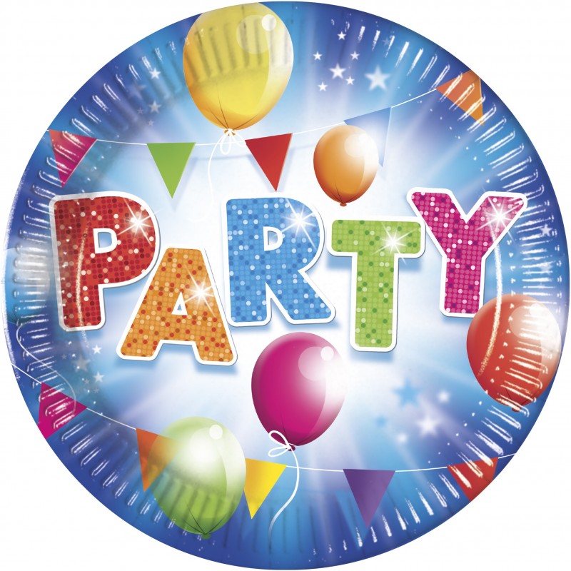 Χάρτινα πιάτα με θέμα Party και μπαλόνια