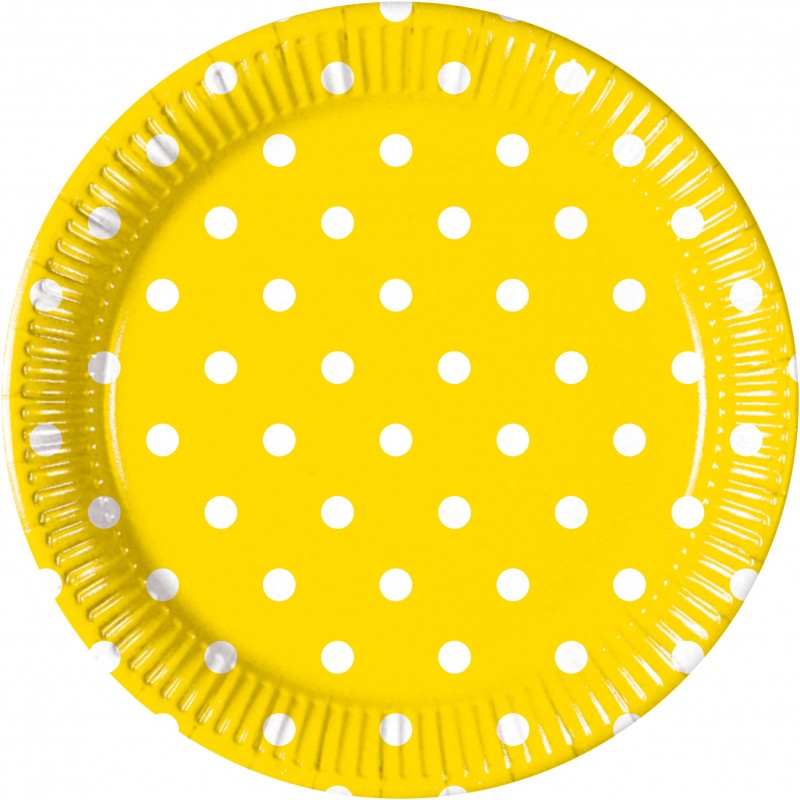 Χάρτινα πιάτα κίτρινα με λευκά πουά