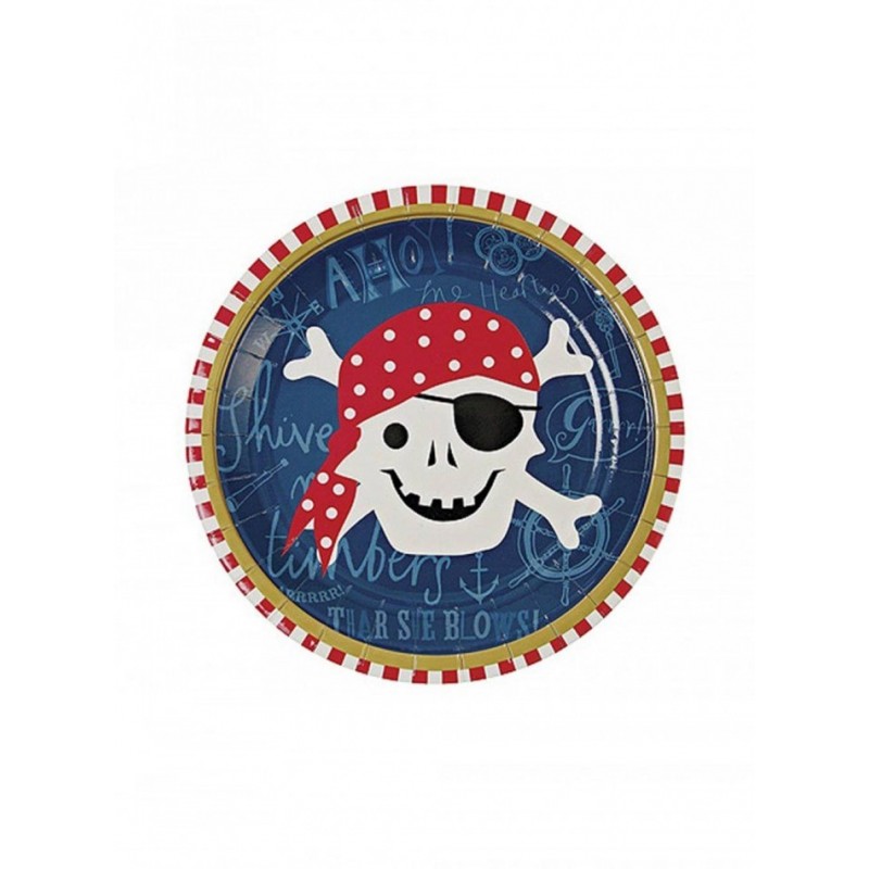 Χάρτινα πιάτα με θέμα τον Πειρατή Ahoy. Επιβάλονται για ένα σωστο πειρατικό πάρτι! Συνδυάστε τα με τα ποτήρια, τις χαρτοπετσέτες, το τραπεζομάντηλο, τη βάση και τον εξοπλισμό για πειρατικά cupcakes!