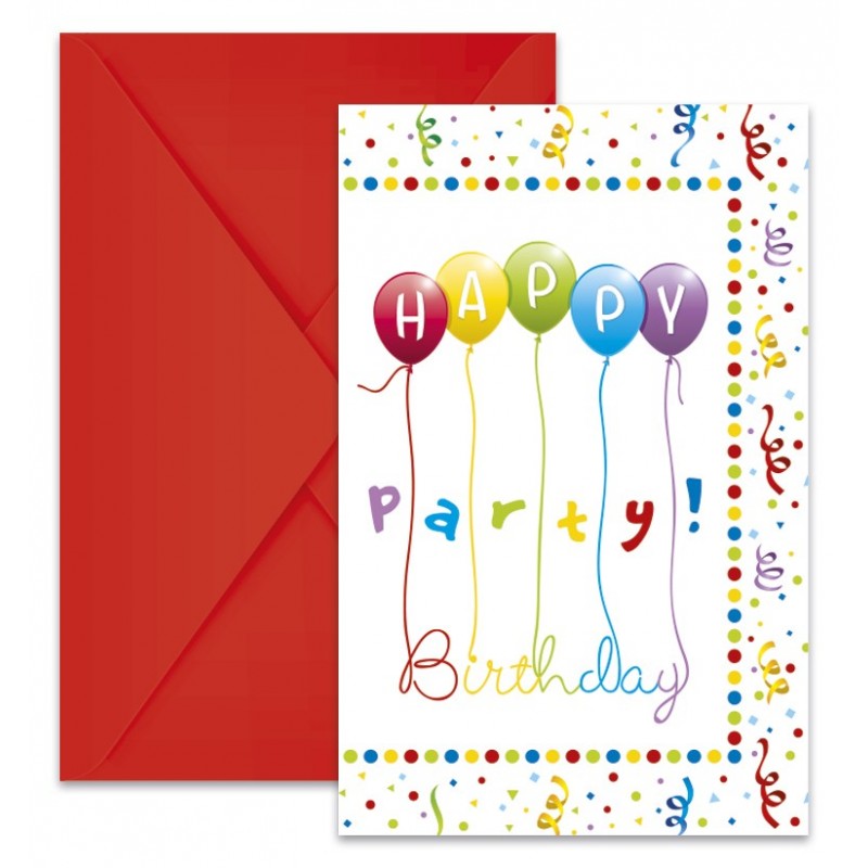 Προσκλητήρια Happy Birthday λευκά με μπαλόνια. Συνοδεύονται από φακελάκια