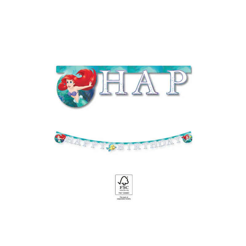 Γιρλάντα χάρτινη με μήνυμα Happy Birthday και θέμα Ariel Disney.