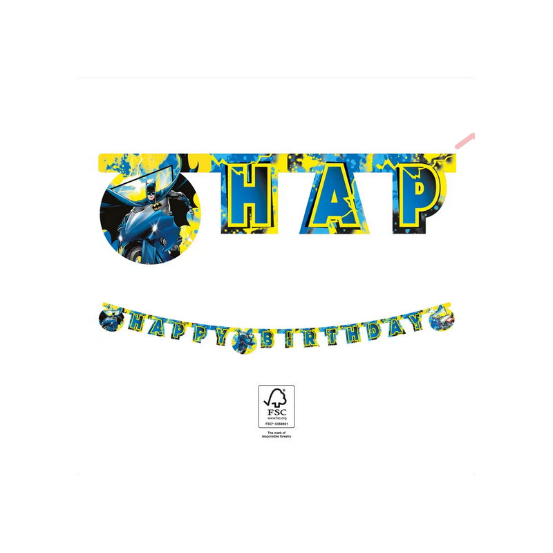 Γιρλάντα χάρτινη με μήνυμα Happy Birthday και θέμα Batman.