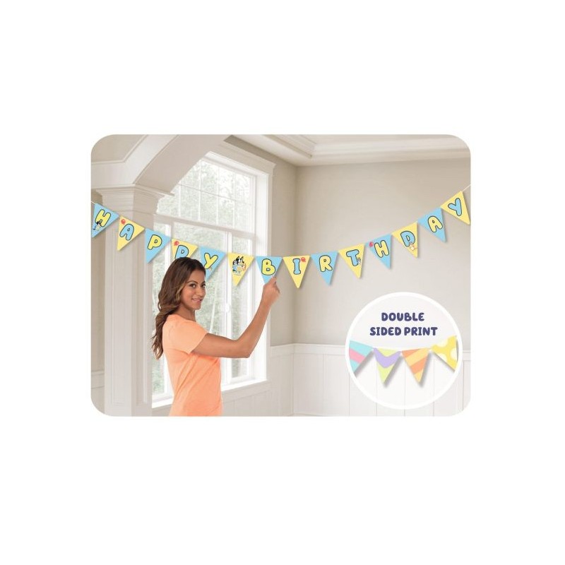 Γιρλάντα 4.5m τριγωνικά σημαιάκια φράση happy birthday με θέμα Bluey.